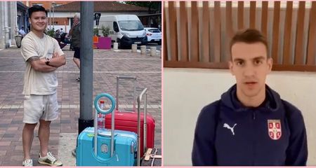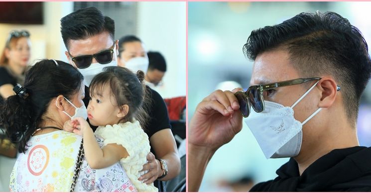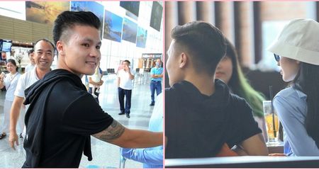 Ảnh: Quang Hải ngại ngùng nói lời biệt ly với người yêu giữa sân bay